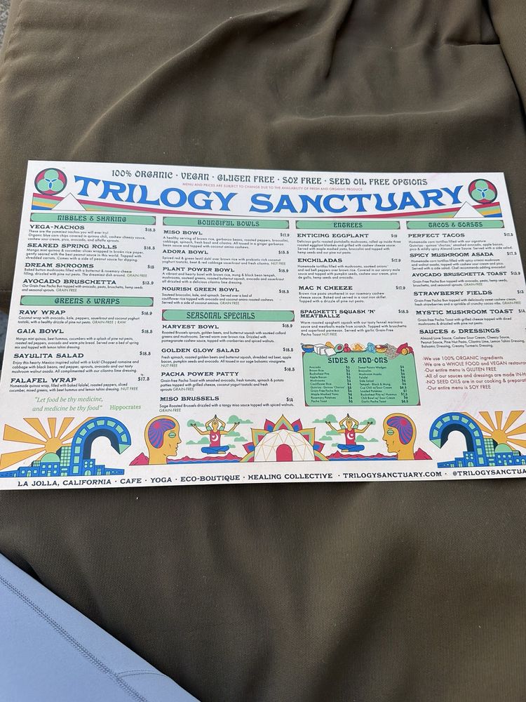Trilogy Sanctuary is a vibrant and trendy restaurant located in La Jolla, California, offering a unique dining experience for vegans and non-vegans alike. This sanctuary not only caters to a diverse range of dietary preferences but also provides a haven for those seeking a holistic dining experience. With options for delivery, takeout, reservations, and even catering services, Trilogy Sanctuary truly goes above and beyond to accommodate their guests.